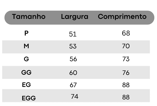 Tabela de tamanhos
