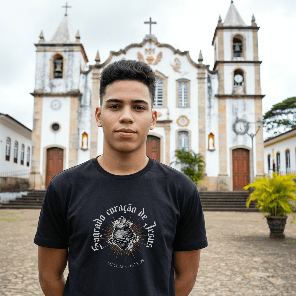 Com um design exclusivo que transmite fé e devoção, a camisa Sagrado Coração de Jesus é a peça que vai renovar o seu guarda-roupa com muito estilo e espiritualidade.